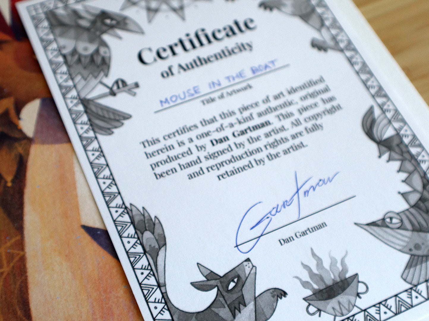 Each artwork is hand-signed by me. Includes certificate of authenticity that guarantees that signed art is original.